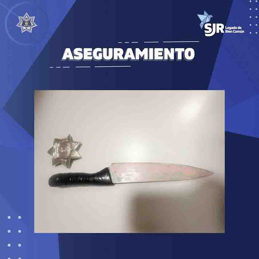 Tras darle alcance y realizar la inspección preventiva, se le localizó un arma blanca entre sus pertenencias. Por ello, el sujeto fue asegurado y puesto a disposición de la Fiscalía General del Estado de Querétaro por el delito de portación de armas prohibidas.