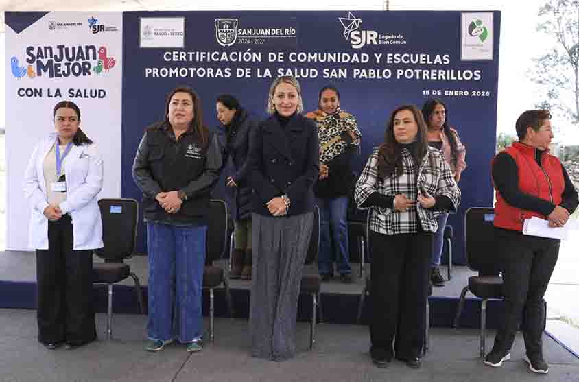 Querétaro, Qro.-Por su compromiso sostenido y acciones coordinadas para fomentar comunidades higiénicas y seguras, así como abordar de manera integral los determinantes de la salud y fortalecer las competencias locales, San Pablo Potrerillos fue certificada como Entorno y Comunidad Promotora de la Salud, además de dos escuelas ubicadas en esta localidad.