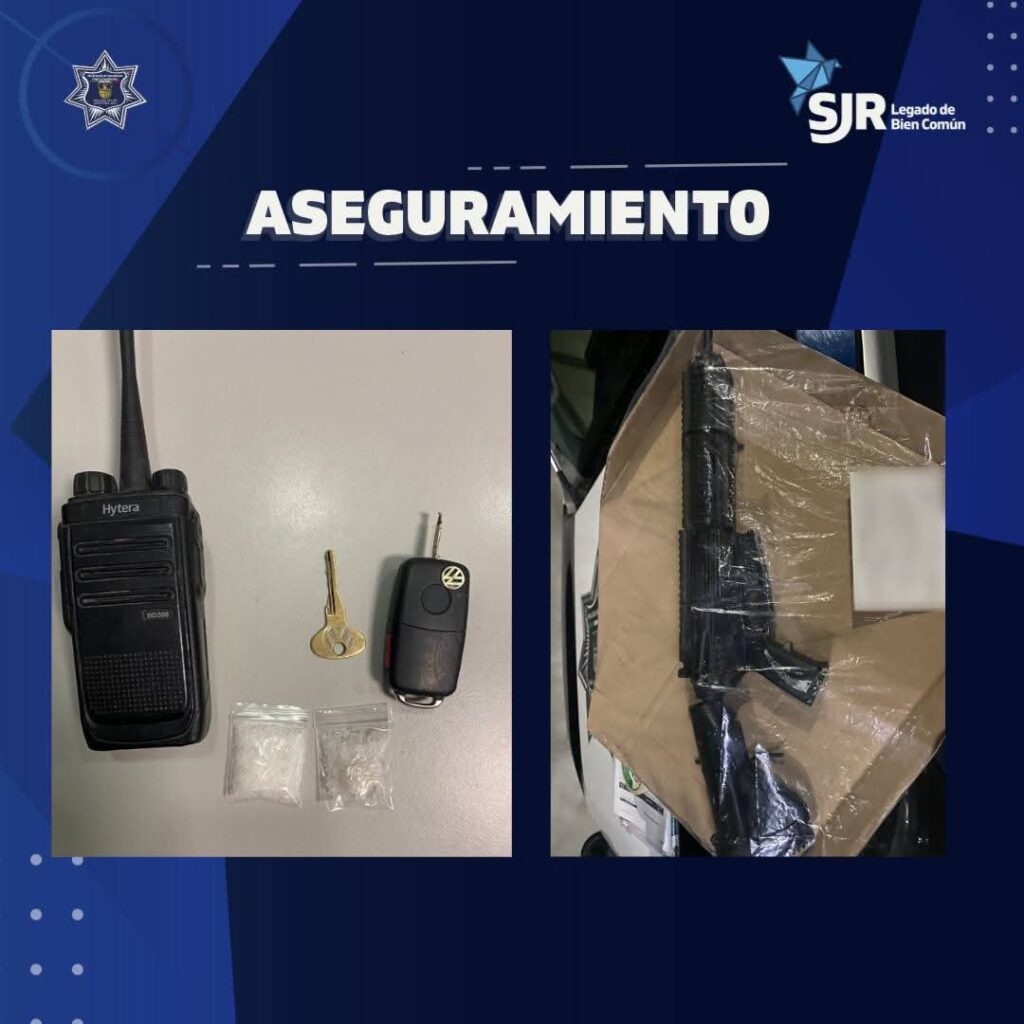 Ante estos hechos, tanto el vehículo como el individuo fueron asegurados. El masculino fue puesto a disposición de la Fiscalía General del Estado por delitos contra la salud, portación de armas prohibidas y delitos contra la seguridad pública.