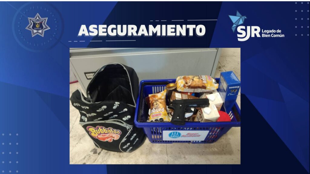 Mediante el monitoreo de cámaras del C4, se identificó a los presuntos responsables y una unidad policial les dio alcance, siendo detenidos tras intentar huir. En la inspección se les aseguraron productos en una canasta cuya posesión no acreditaron, un arma tipo réplica y una mochila. Personal del comercio los señaló de manera directa como los responsables.