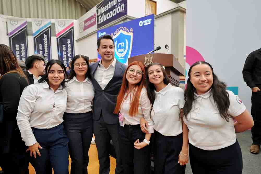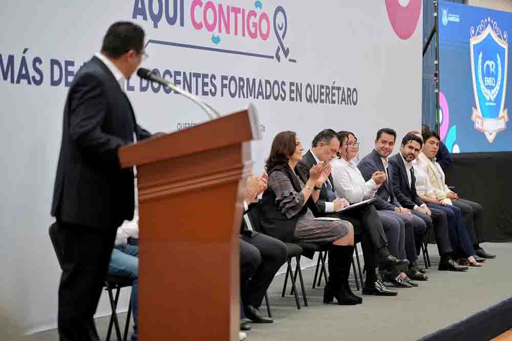 Al inicio del evento, el alcalde acompañó al gobernador del estado y a la secretaria de Educación, Martha Elena Soto Obregón, en la develación de la placa conmemorativa por el CXL aniversario de la Centenaria y Benemérita Escuela Normal del Estado de Querétaro “Andrés Balvanera”.