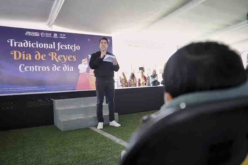 Las niñas, niños y adolescentes de los distintos Centros de Día fueron apadrinados por el alcalde, la presidenta del SMDIF, así como de secretarios, regidores, directores, coordinadores y jefes, con quienes convivieron durante la celebración del Día de Reyes junto a los Reyes Magos y compartir la tradicional rosca.