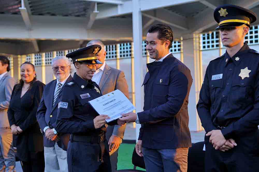 Además, se entregaron constancias a 19 egresados de la segunda generación del curso de Formación Inicial para Policía de Proximidad, 9 hombres y 10 mujeres, quienes cumplieron mil 80 horas de capacitación del 10 de marzo al 6 de septiembre.