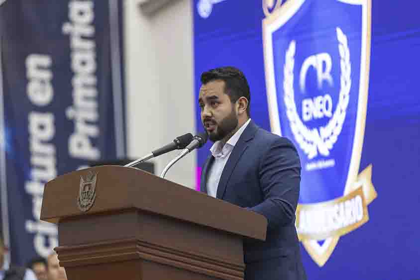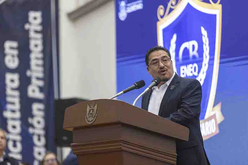 Durante su mensaje, el director general de la CBENEQ “Andrés Balvanera”, Israel Pérez Perales, invitó al Gobernador a sentirse orgulloso de una visión institucional que inició en 1886, y que a lo largo de su historia ha contribuido a la formación de más de 18 mil docentes, con reconocimiento a nivel nacional e internacional.