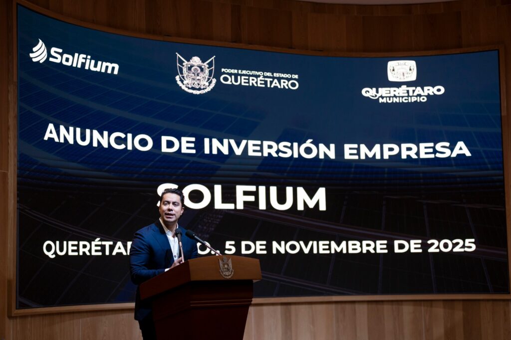 Querétaro, Qro.-En aras de continuar con la tarea de impulsar el abasto de energía, cuidar y conservar el medio ambiente como dos premisas de la presente administración estatal, el gobernador, Mauricio Kuri González, encabezó el anuncio de inversión por 10 millones de dólares de la empresa Solfium, líder en el sector de energía solar y la descarbonización de cadenas de valor empresariales; alianza que busca posicionar al estado como un líder en la transición energética de México, estableciendo un ejemplo en estrategias de sostenibilidad que integran tecnología, inclusión y desarrollo social.