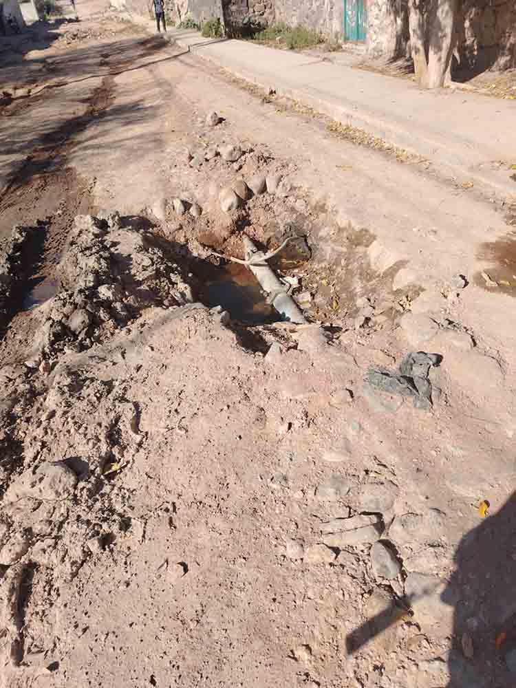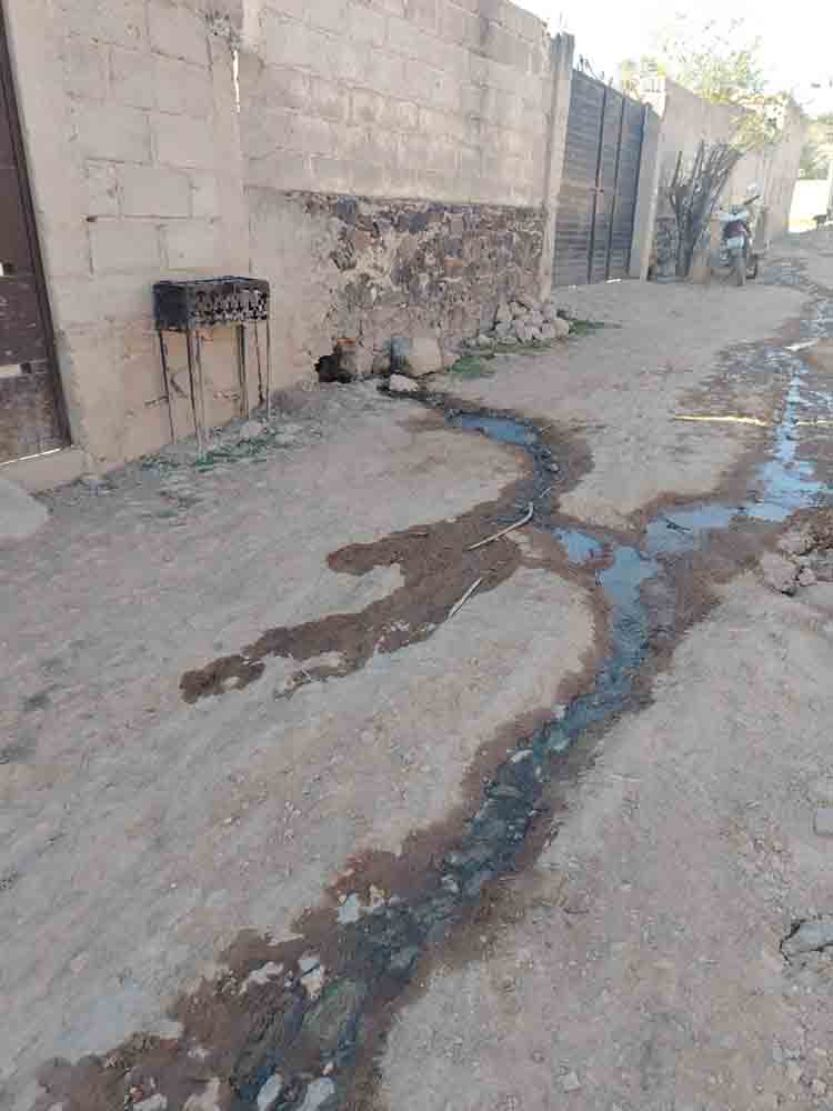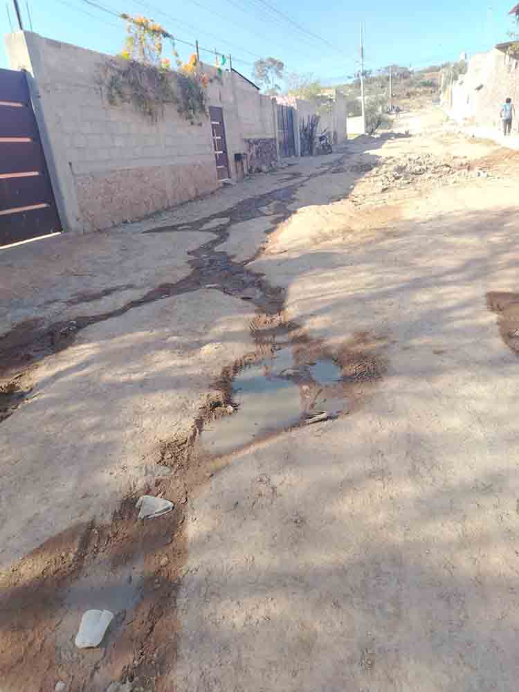 «Los trabajadores de Héctor Magaña vienen un día y luego desaparecen una semana», nos cuentan los vecinos. Y como si fuera poco, hay un escurrimiento de agua de una casa queLo nadie atiende, y eso ha terminado de hundir la calle.