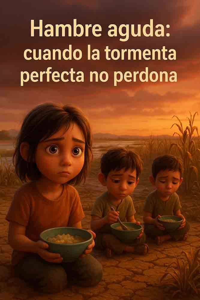 Roma, Italia, 16 sep. — La Organización de las Naciones Unidas advirtió hoy de una convergencia crítica entre conflictos armados, eventos climáticos extremos (inundaciones, sequías, tormentas) y recortes sustanciales en la ayuda internacional, una combinación que está gestando lo que funcionarios llaman una “tormenta perfecta” que alimenta inseguridad alimentaria aguda en países como Pakistán, Sudán, Afganistán, Myanmar y Gaza. El WFP (Programa Mundial de Alimentos) reporta que la inseguridad alimentaria se ha triplicado en cinco años, y que los recortes de fondos —especialmente desde EE. UU. y algunos países europeos— han mermado su capacidad de acción en regiones vulnerables. (AP News)