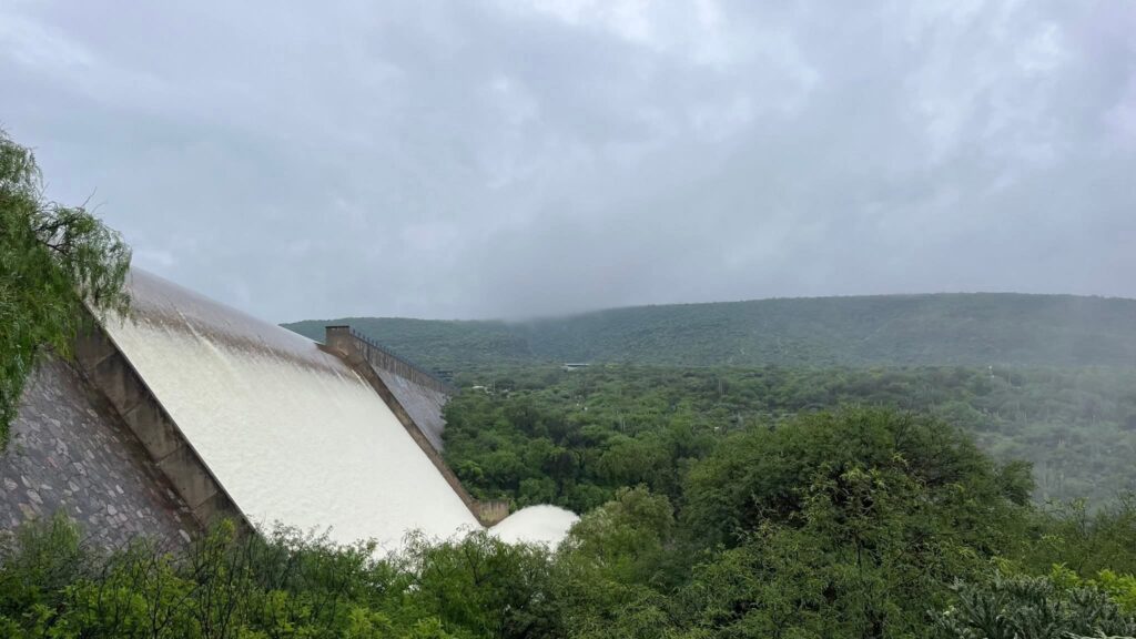 Las autoridades informan que la cortina de la Presa La Soledad se encuentra desfogando grandes cantidades de agua, producto del incremento en su nivel por las lluvias recientes.