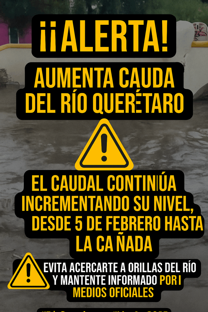 Querétaro, Qro., — La creciente del Río Querétaro ha comenzado a generar alarma entre la población luego de que, en las últimas horas, su caudal incrementara de manera significativa, alcanzando tramos desde la avenida 5 de Febrero hasta la zona de La Cañada.