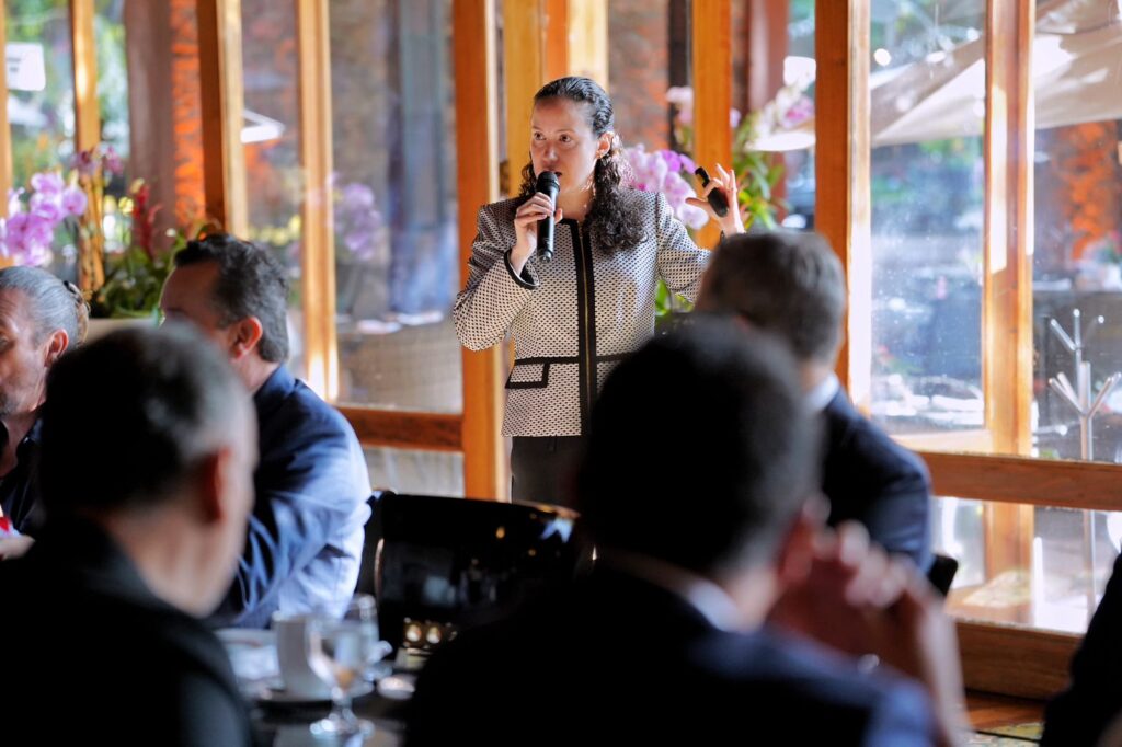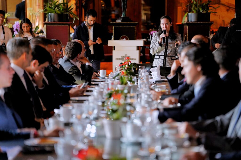 Durante el encuentro se destacó la participación de Gabriela Soní, reconocida por Bloomberg Línea como una de las 500 personas más influyentes de América Latina en 2021 y 2022, con 15 años de experiencia en el sector financiero y directora de estrategia de inversión de UBS México y responsable de la gestión de los fondos de renta variable de Scotiabank en el país, quien compartió su visión sobre el panorama económico nacional e internacional y la relación estratégica entre México y Estados Unidos.