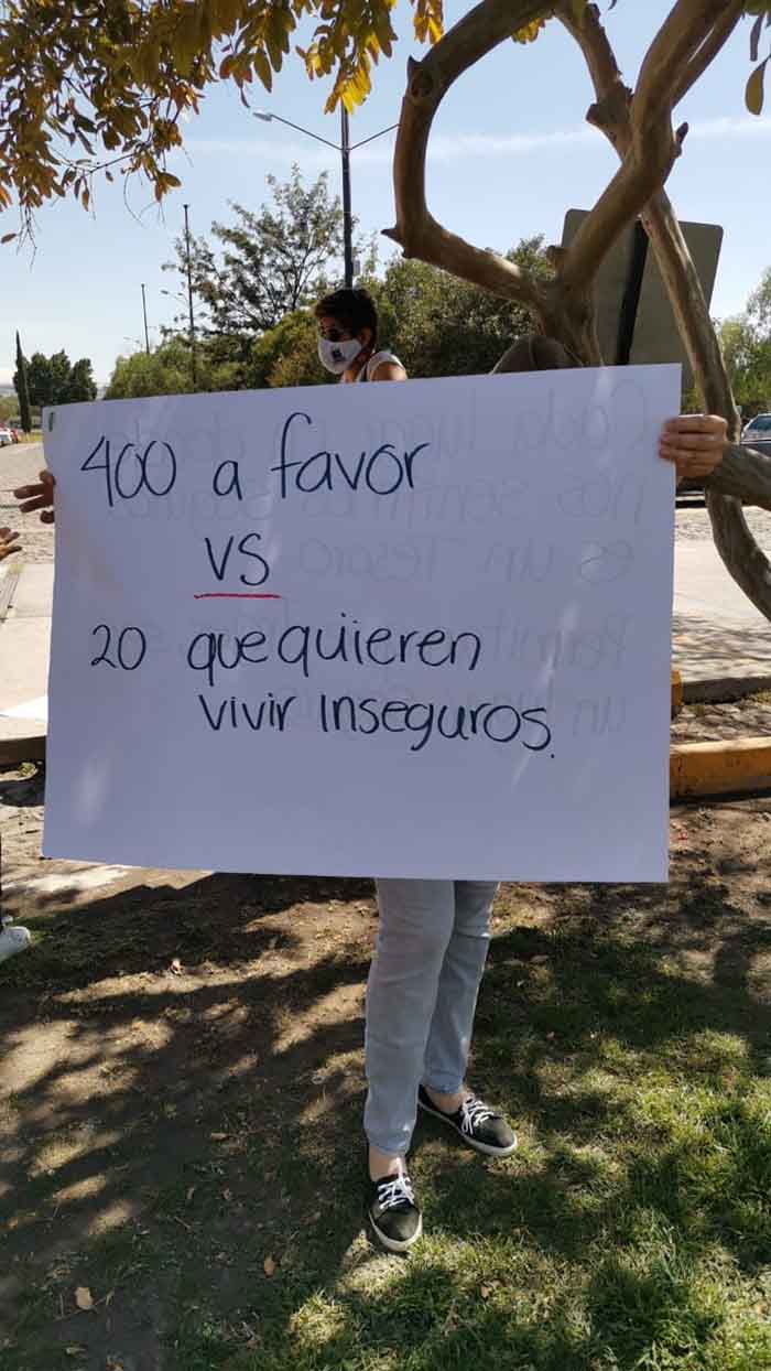 Un grupo de mujeres de este fraccionamiento, con cartulinas en mano le exigieron a la autoridad que quite los sellos de cancelación y les permita continuar con la pluma que da acceso a su fraccionamiento, que fue cancelado por un inspector municipal.