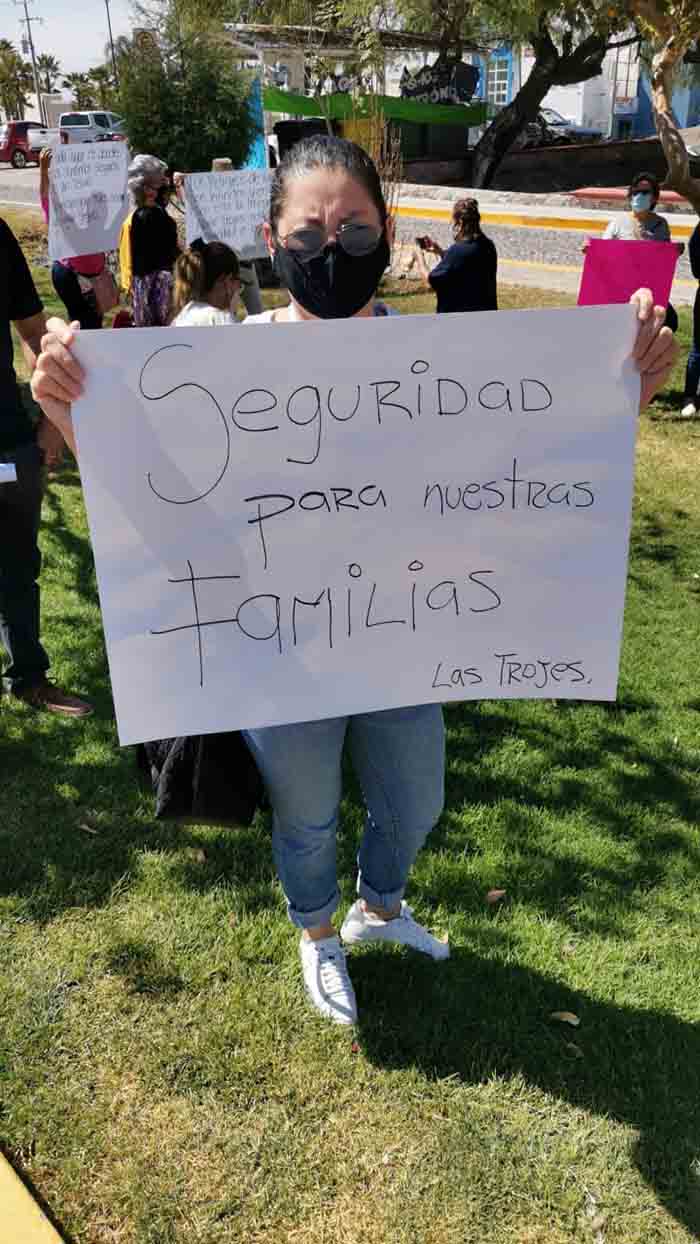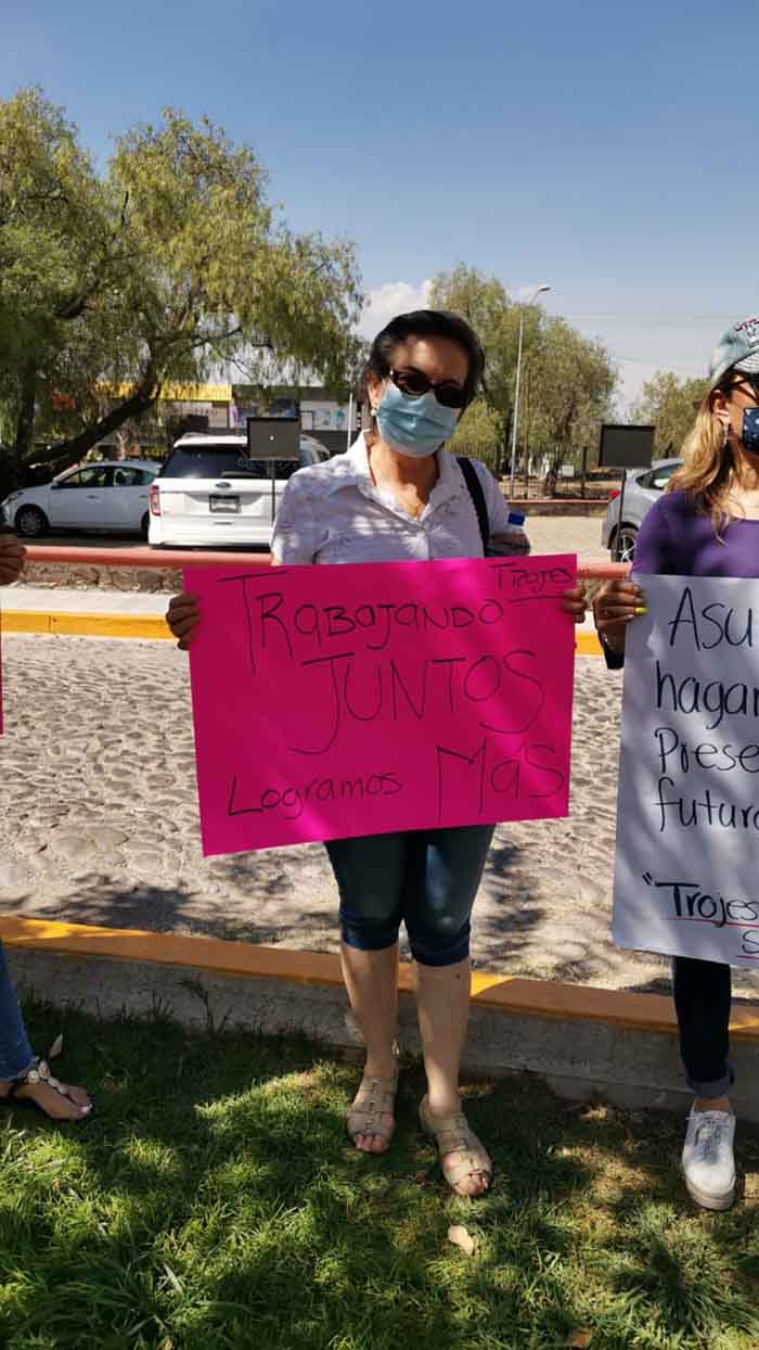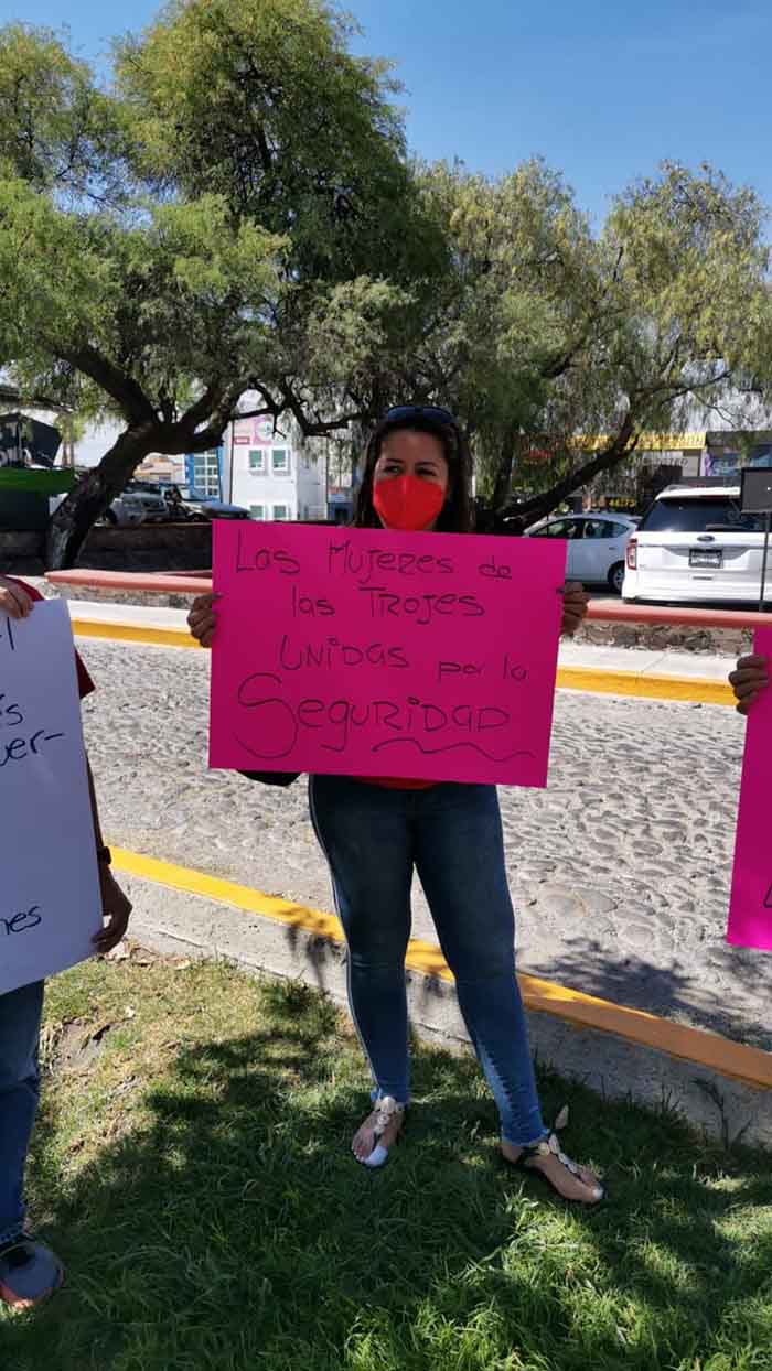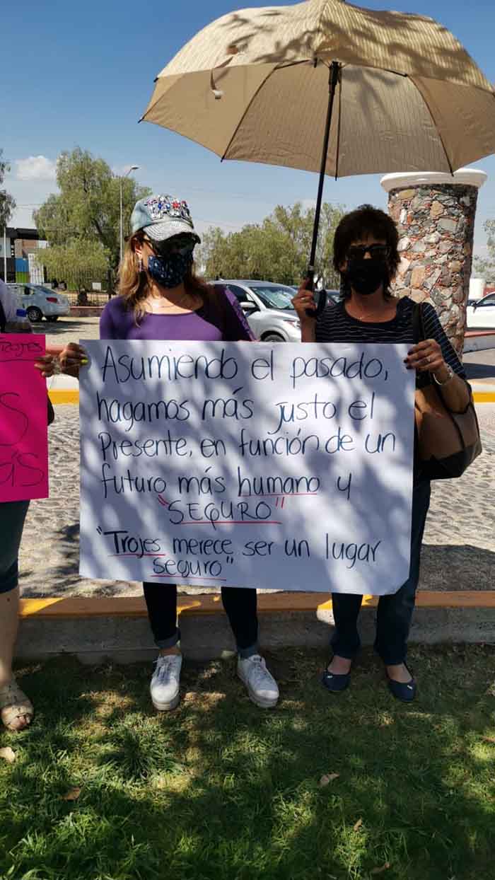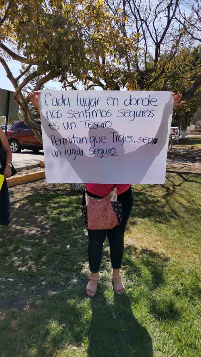 “Las mujeres de Las Trojes unidas logramos más” decía en uno de sus carteles, en otra aseguraban que la inseguridad es por órdenes municipales, esto por la indicación que dio la presidencia de quitar sus plumas.